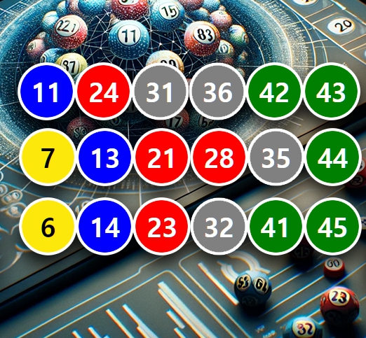 번호 조합 1: 11, 24, 31, 36, 42, 43